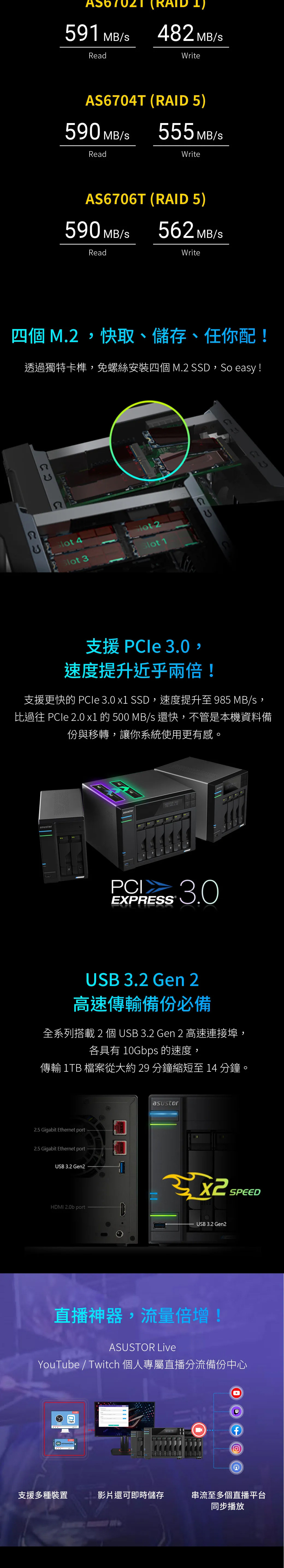 磁碟類型:3.5" SATA HDD / 2.5" SATA HDD / 2.5" SATA SSD / M.2 2280 NVMe