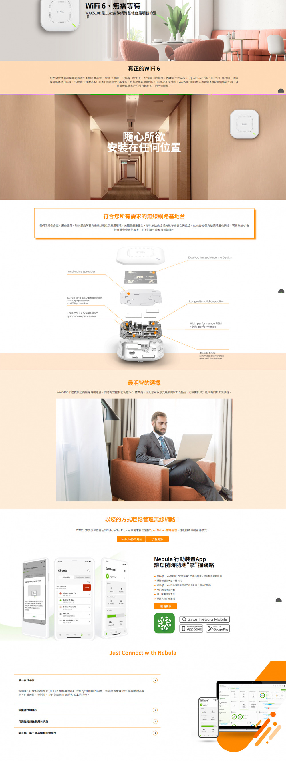 ●天線增益:2.4 GHz:Peak Gain 5dBi / 5 GHz:Peak Gain 6dBi