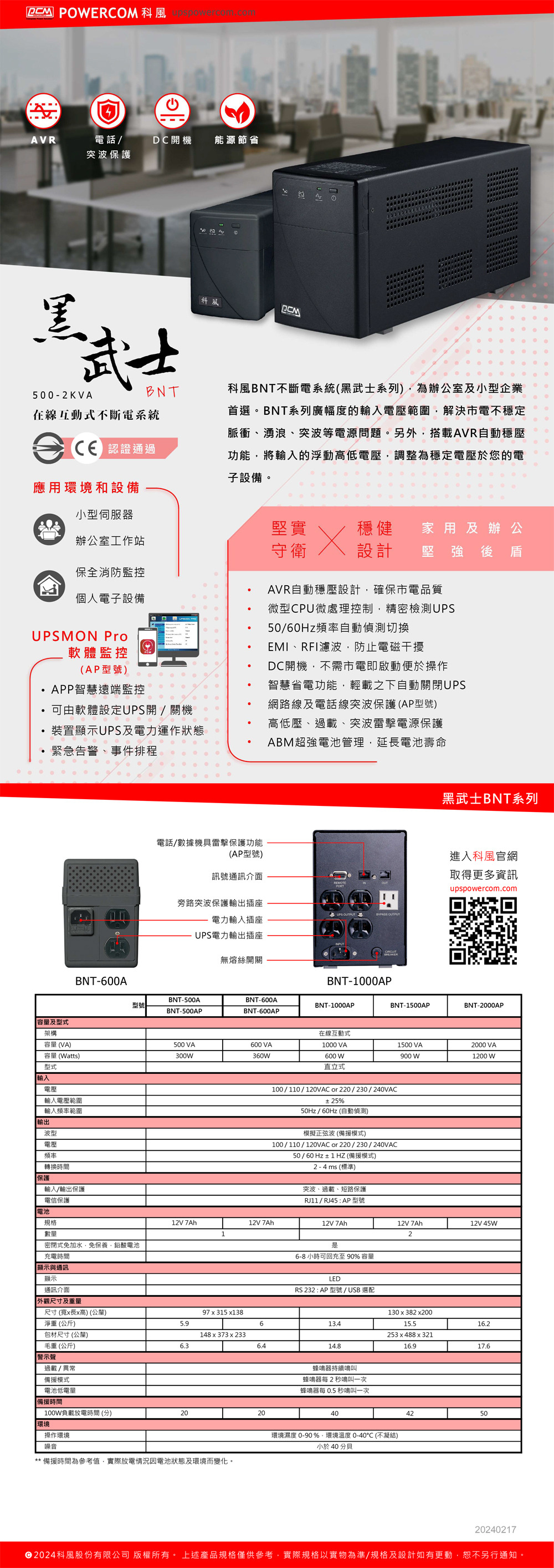 LED顯示器:市電與備源操作模式,隨時顯示UPS及電池運轉情況