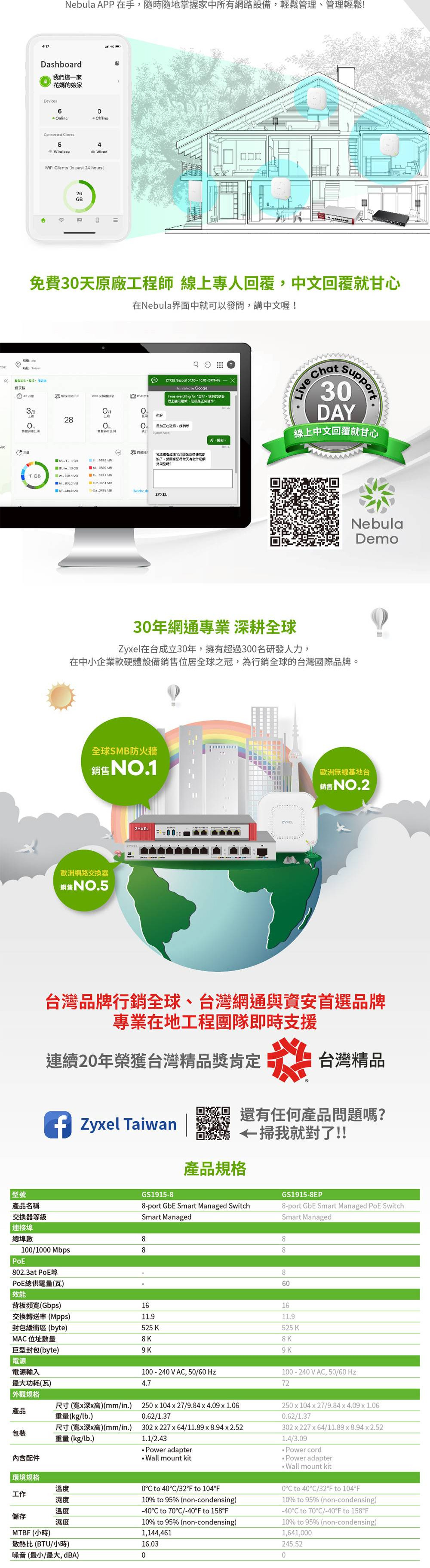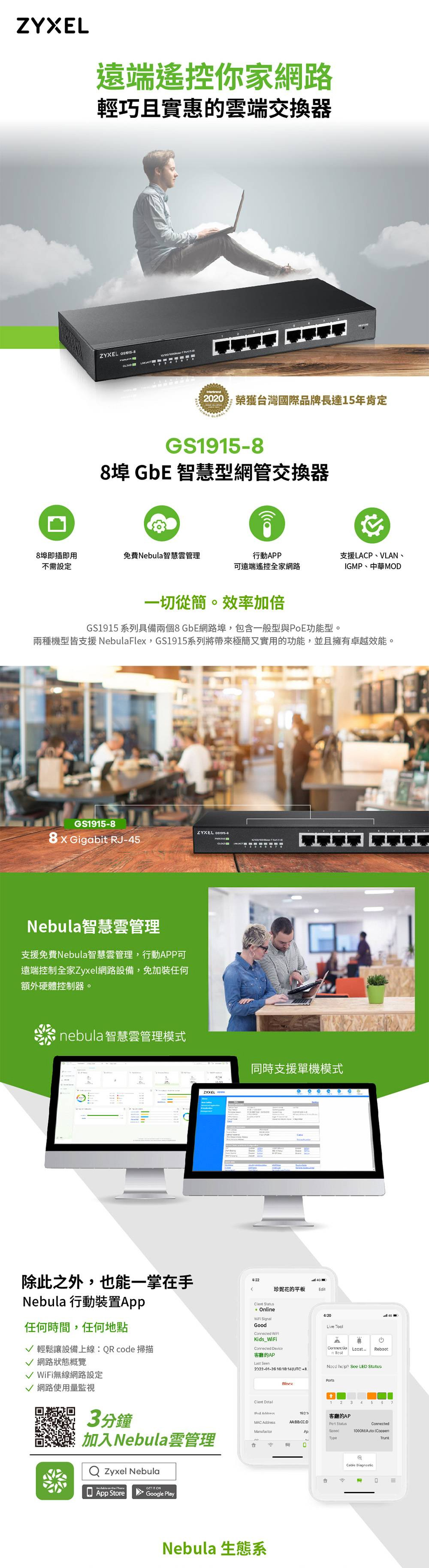ZyXEL 合勤 GS1915-8 8埠GbE 智慧型網管交換器