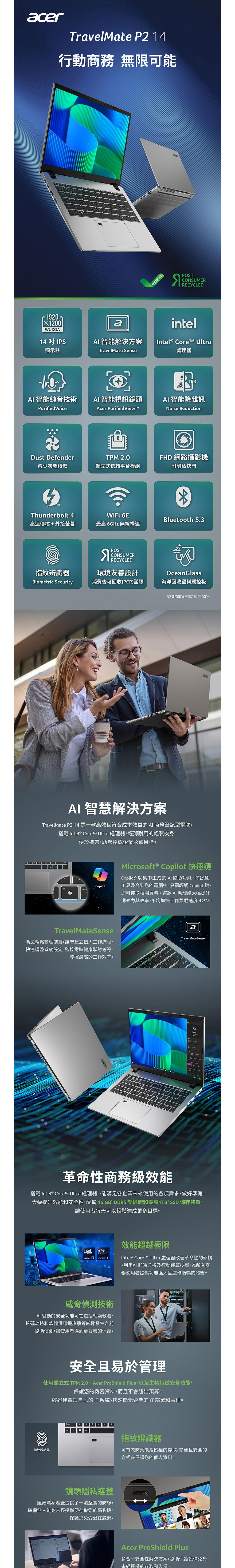 ▪處理器:Intel Core Ultra 5 125H (1.2GHz up to 4.5GHz,18M Cache)14 cores;Intel AI Boost NPU