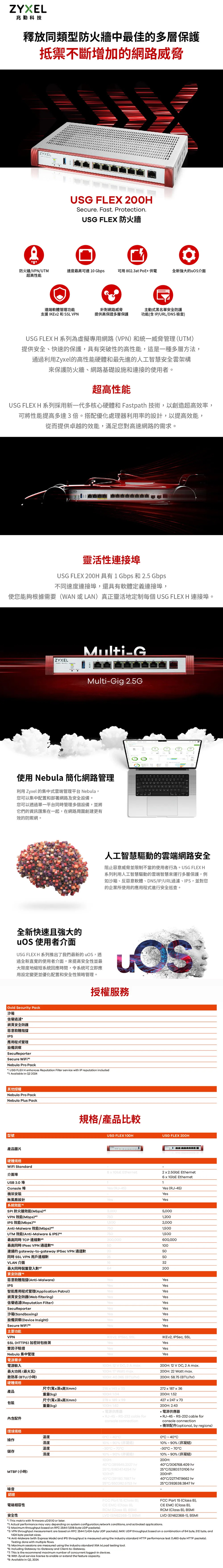 Zyxel 合勤 USG FLEX 200H 防火牆