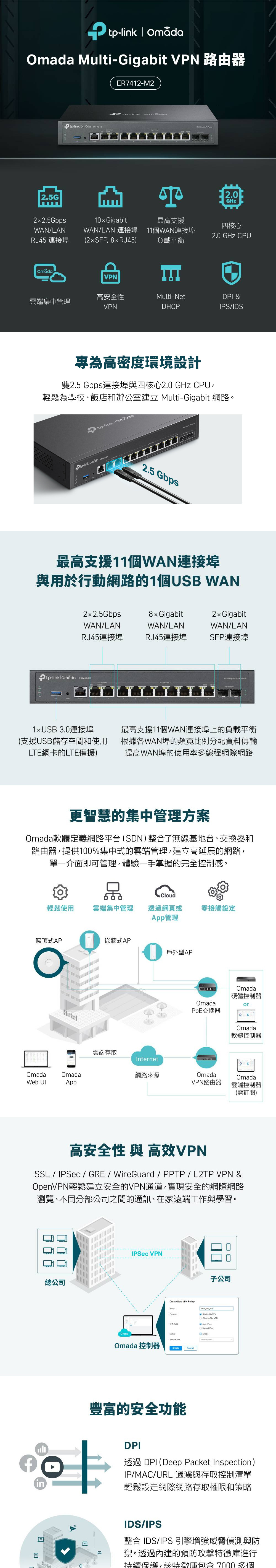 • 8× Gigabit RJ45 WAN/LAN 連接埠